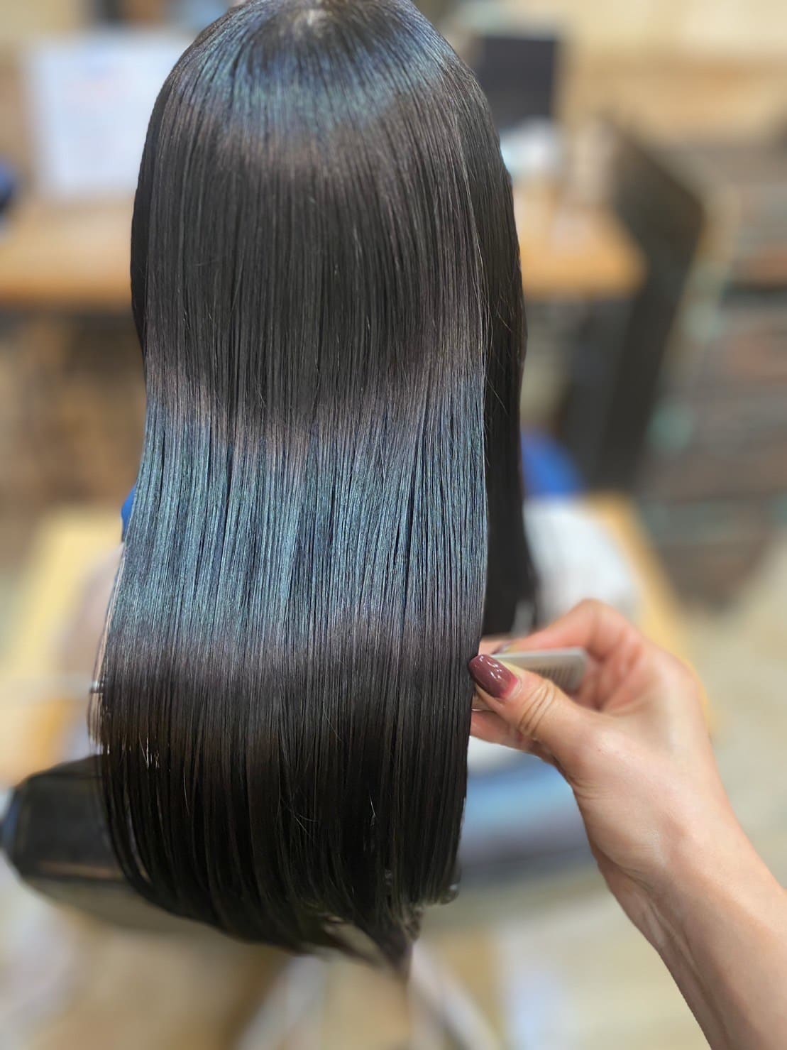 この施術の素晴らしい点は、髪の質感が明らかに向上することです。施術後の髪は、従来のカラーリングでは得られなかった艶やかさと滑らかさを実現します。カラーリングによる乾燥やパサつきが気になる方に特におすすめです。また、トリートメント効果により、髪色の持続性も向上し、より長く美しい髪色を保つことが可能です。