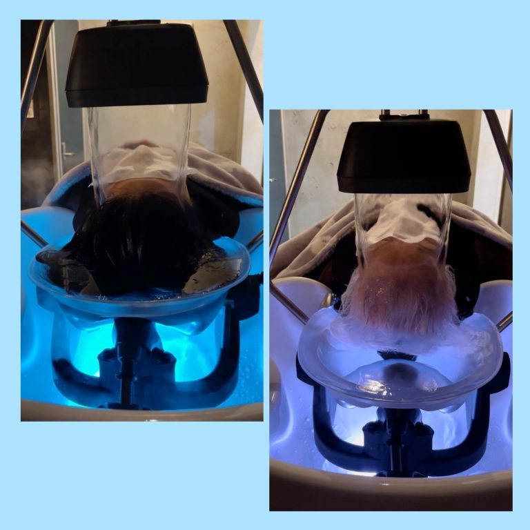 フェイスラインから炭酸の入ったお湯、炭酸泉をかけ流し頭全体が浸かることで、お風呂に入った後のようなスッキリ感、気持ちの良い脱力感が体験できます。