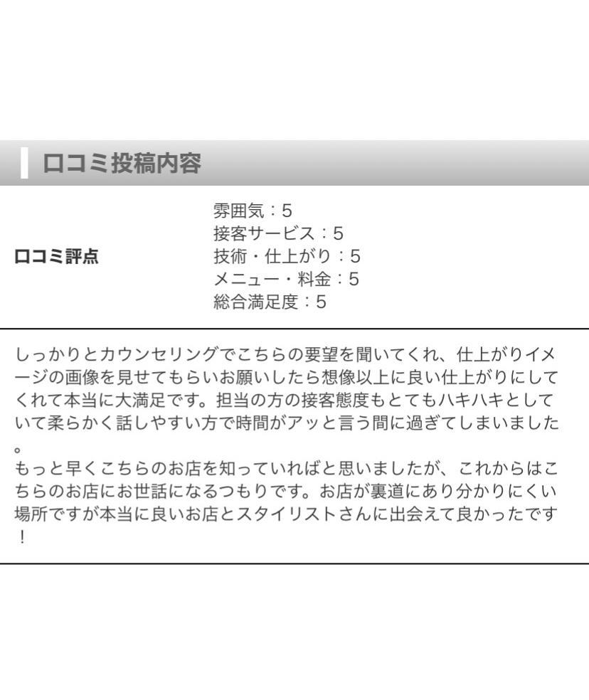 とても嬉しい口コミを書いて頂きました!