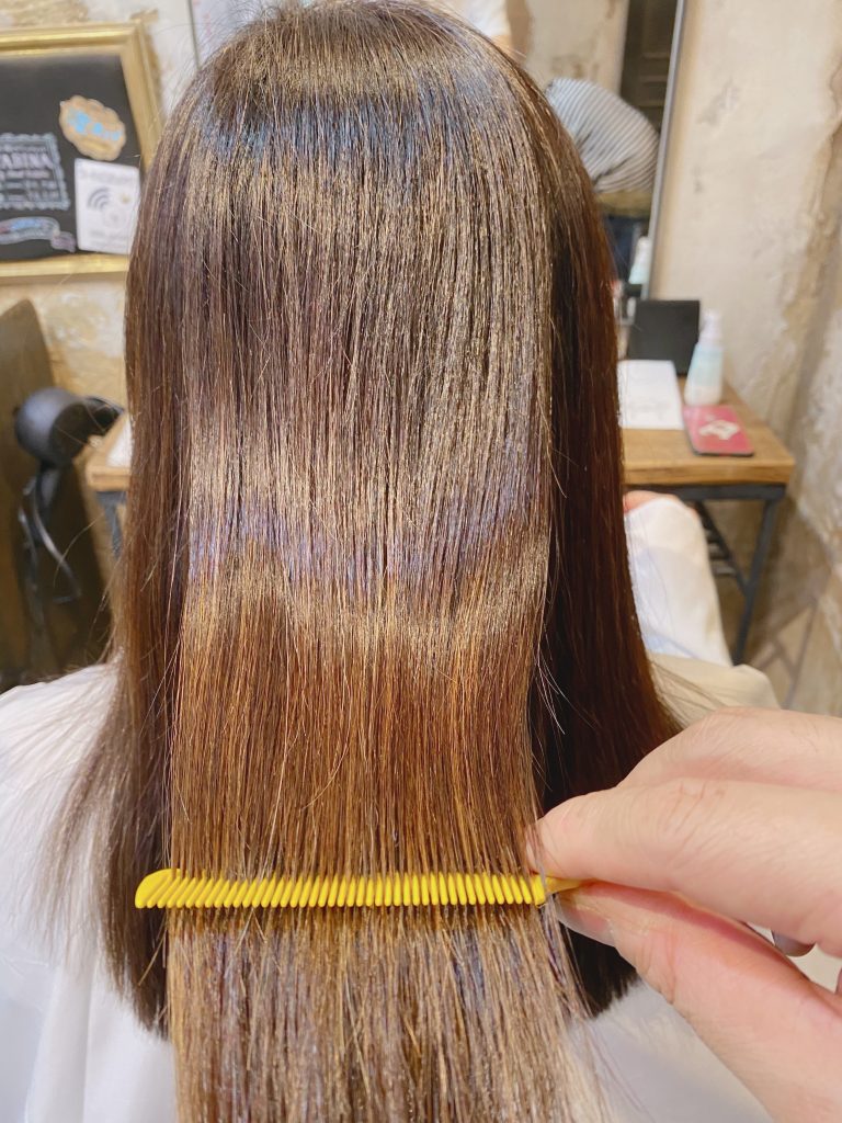 根本は白髪染めからの中間毛先は、鉄板のカラーエステで艶髪の完成です。