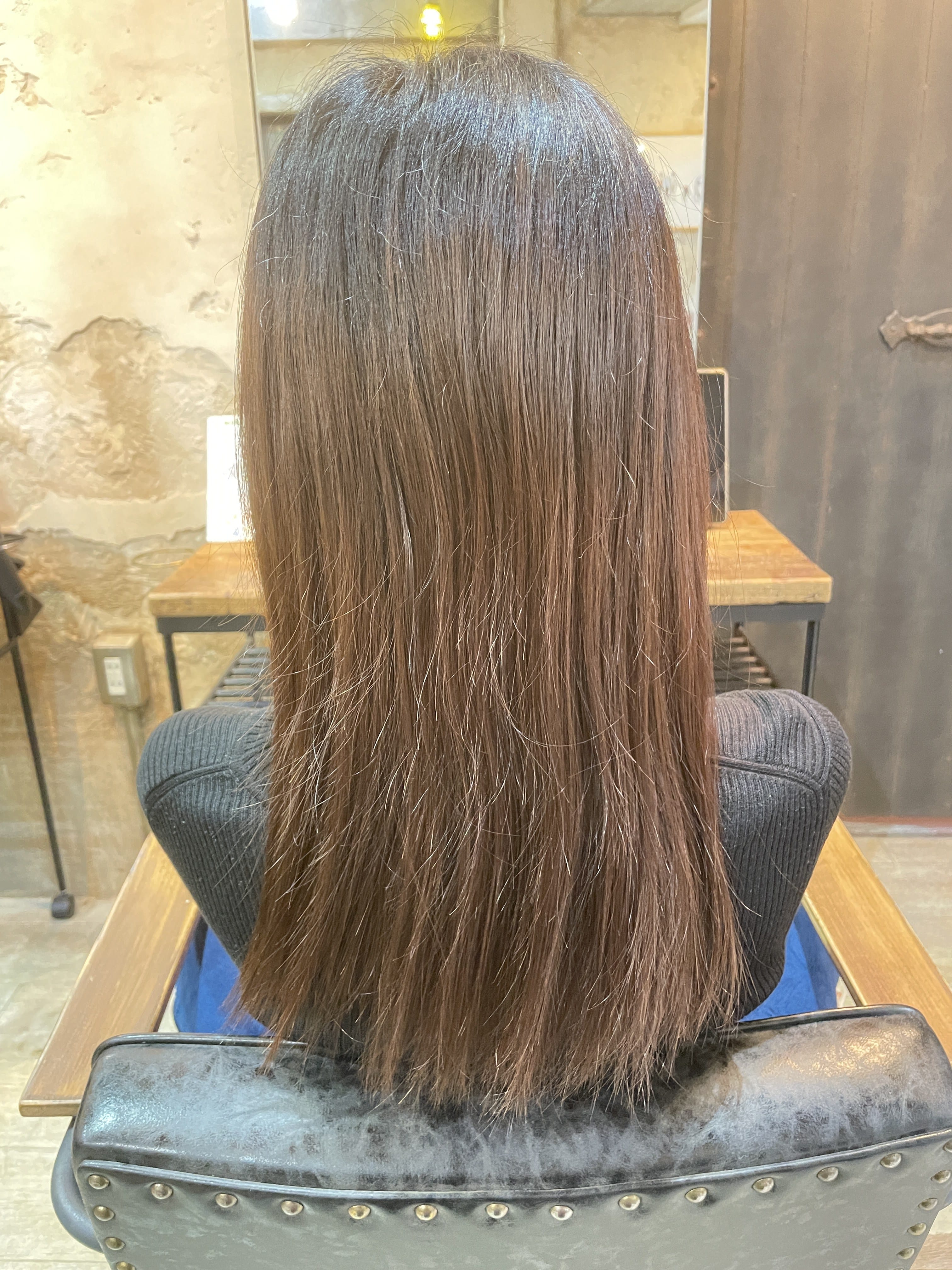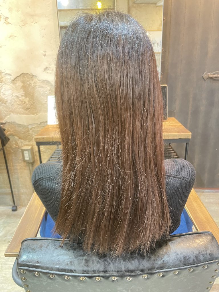 今回も髪質改善ストレート。 トリートメントもセットで一緒にできちゃいます。 最後にアイロンの熱でさらにトリートメントを髪の毛の内部に入れていきます。